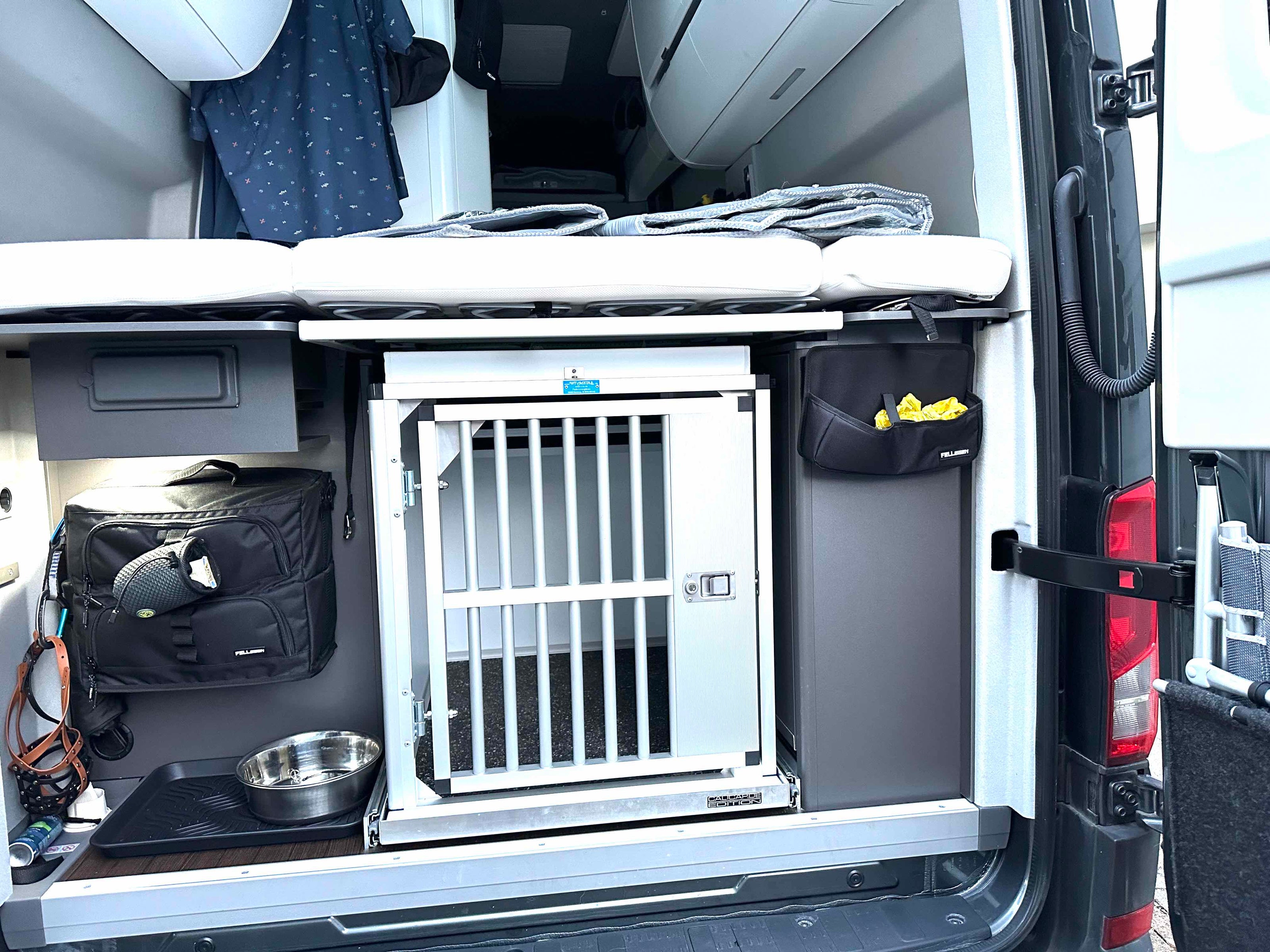 Ein sehr schöner Camperausbau mit unserem Roofbag wurde von der Firma Reisewagendienst durchgeführt. Der Kundenwunsch waren entnehmbare Taschen, so dass diese leicht und komfortabel beladen werden können. Das war natürlich direkt an uns adressiert. Das Roofbag kreiert extrem viel Stauraum, ist leicht zu entnehmen und bietet neben der Netztasche auch die Möglicheit den Zwischenboden herauszunehmen. So kann z.B. ein Motorradhelm leicht verstaut werden.