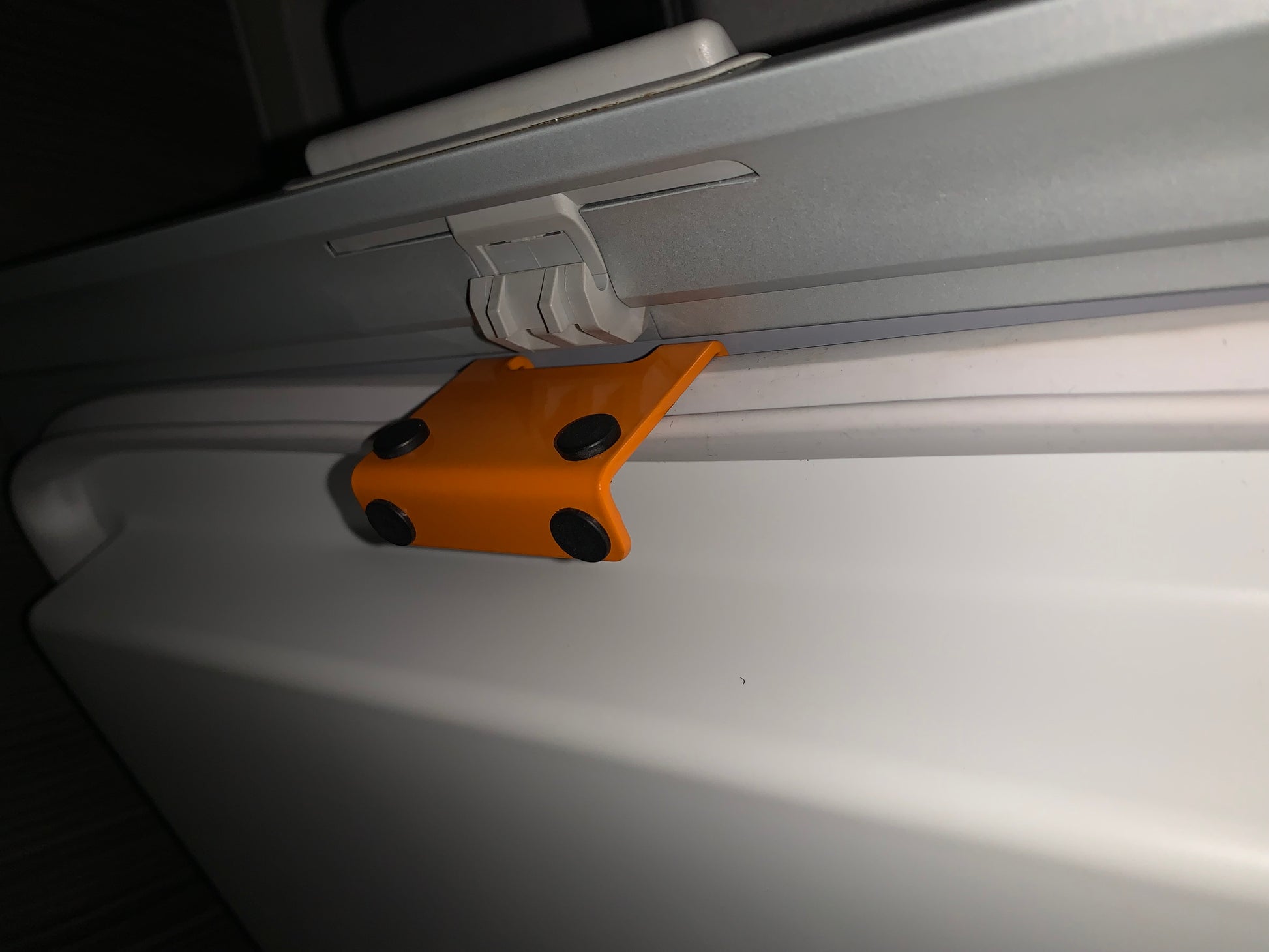 Der Aluwinkel wird einfach unter die Dichtung des Kühlboxdeckels geklemmt und hält diesen einen Spalt offen, um eine ausreichende Lüftung zu gewährleisten. Gummipuffer sorgen dafür, dass nichts während der Fahrt klappert.