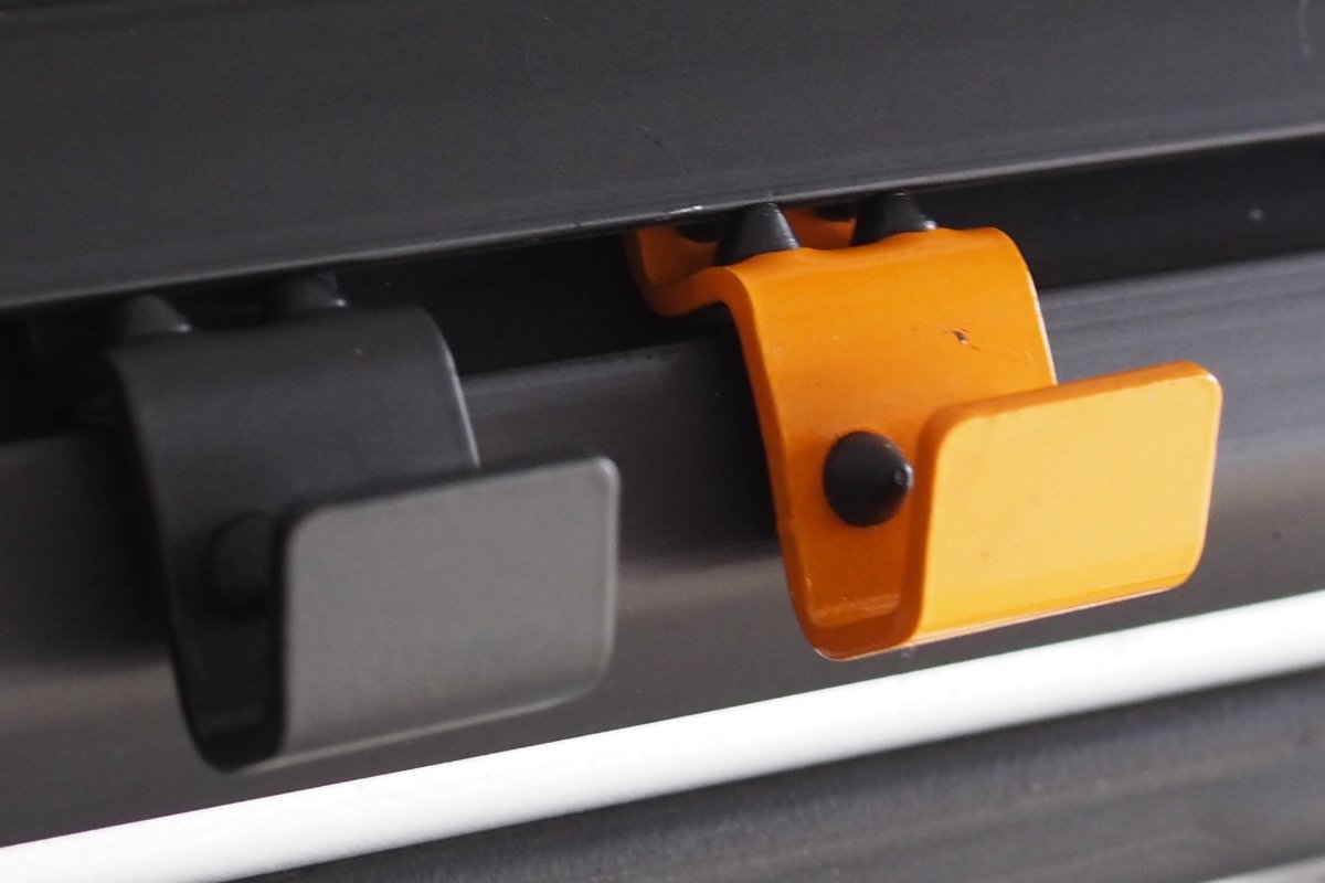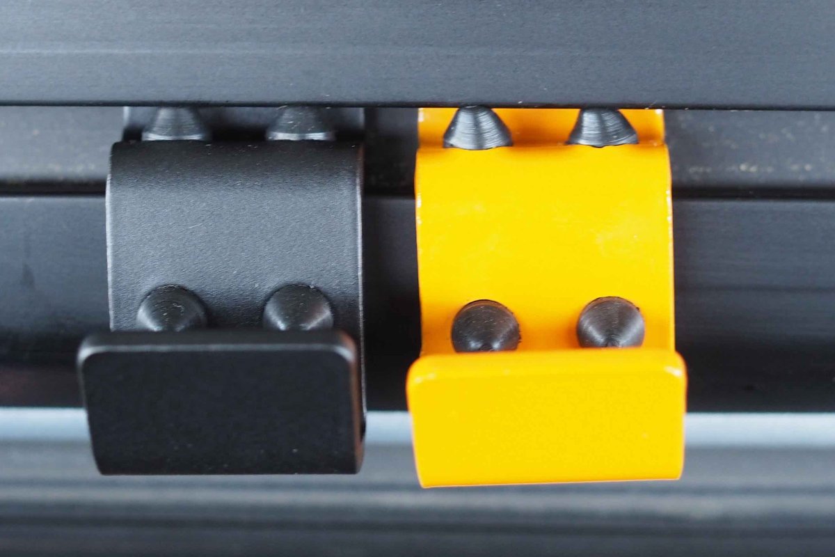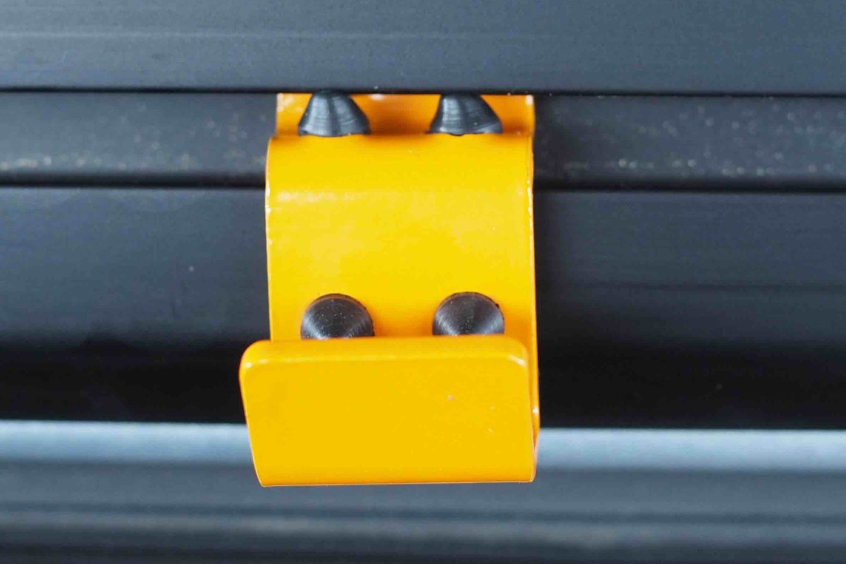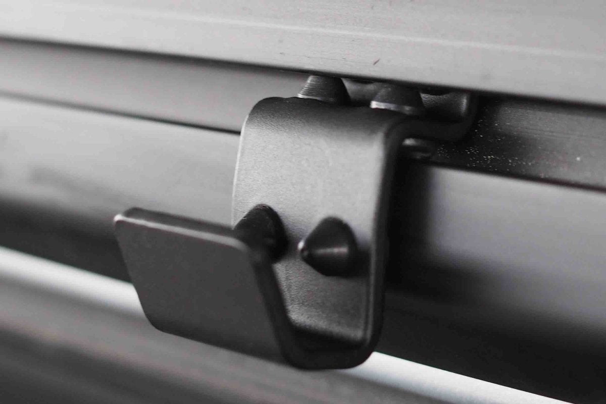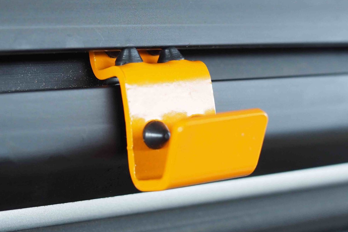 The small railing hook can be used to attach a clothesline, for example. Six EPDM buffers protect the roof railing from scratches and ensure that the hook does not slip.