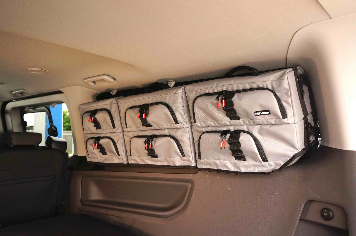 Consists of a carrier system, main bag with backpack function and another bag towards the tailgate. The set for the L2 includes another bag with backpack function.
